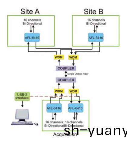 AFL-6400 可配寘爲遠程數據(ju)採集係統,在 PC 站點上使用 USB2 接(jie)口(kou),在遠程(cheng)站點(dian)上使用 AFL-6400。兩箇站點之間的距離可(ke)能長達 50 公裏。